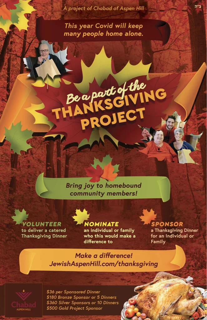 Help us bring Thanksgiving joy to those who need it or would appreciate it in the form of Kosher Catered Thanksgiving Dinners!